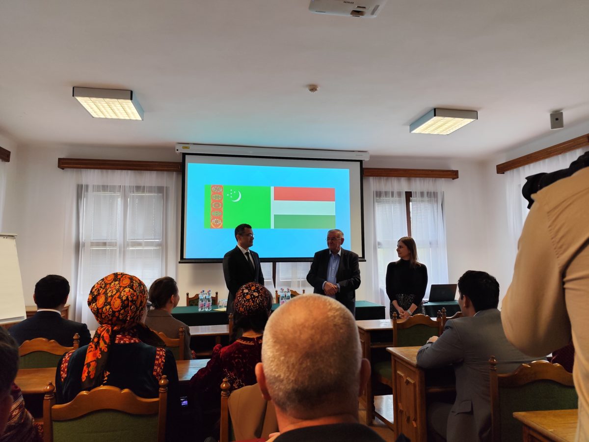 Az egybegyűlteket Lezsák Sándor köszöntötte, aki felidézte az országban töltött egynapos látogatásának szép emlékeit, valamint arra hívta a jelenlévőket, hogy ne csak felfedezzük Türkmenisztánt, hanem gazdag örökségében ismerjük fel mindazt, ami összeköt vele kulturálisan. Az előadások sorát Hemra Amannazarov rendkívüli és meghatalmazott nagykövet nyitotta meg, melyben szólt a Középső Korridor jelentőségéről, annak felértékelődéséről, az elmúlt évek türkmén-magyar kétoldalú kapcsolatairól, Berdimuhammedov elnök 2023-as budapesti, valamint a magyar kormányfő 2024-es ashgabati útjáról. Elismerően beszélt arról a Magyarország által kínált lehetőségről, melynek keretében 20 türkmén diák tanulhat magyar egyetemeken, majd az itt megszerzett tudással hazájukba visszatérve annak fejlődését tudják szolgálni. Köszöntő szavai után a türkmén diákok mutatták be országuk értékeit: a nemzeti zászlót az öt tartományt jelképező csillaggal és az öt törzs motívumait, mely a lobogójuk oldalsó sávjában kapott helyet. Elmondásuk szerint az akhal teke lófajta iránt olyan nagy a tisztelet az országban, hogy védelmére önálló minisztériumot állítottak fel, valamint az államcímer közepén is helyet kapott. Bemutatták az ország kevésbé kedvező földrajzi adottságait, a Karakum sivatag világa mellett előkerültek a kulturális, történelmi és gasztronómiai értékek, valamint a hagyományos türkmén esküvő lefolyását is felvázolták.